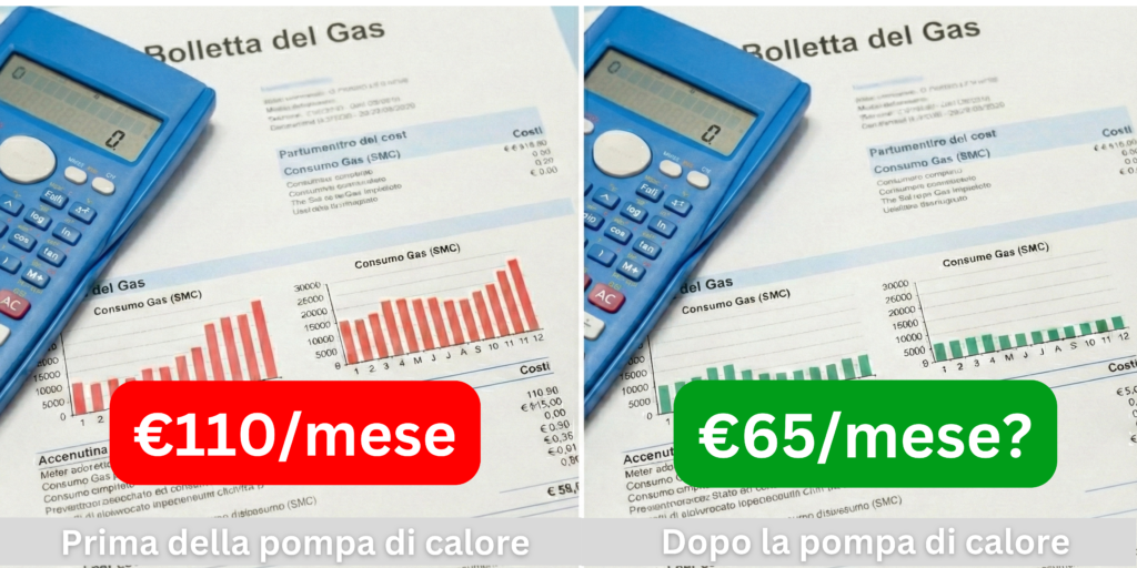 *il risparmio varia in base alle dimensioni dell’abitazione e dell’impianto della pompa di calore aria-acqua